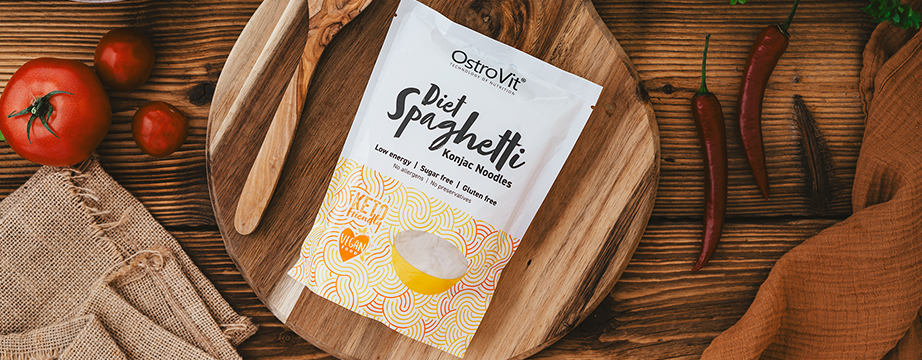 OstroVit Diet Spaghetti Konjac Noodles - це натуральний продукт, основним інгредієнтом якого є глюкоманнан коньяку - водорозчинна клітковина, отримана з кореня рослини коньяку.