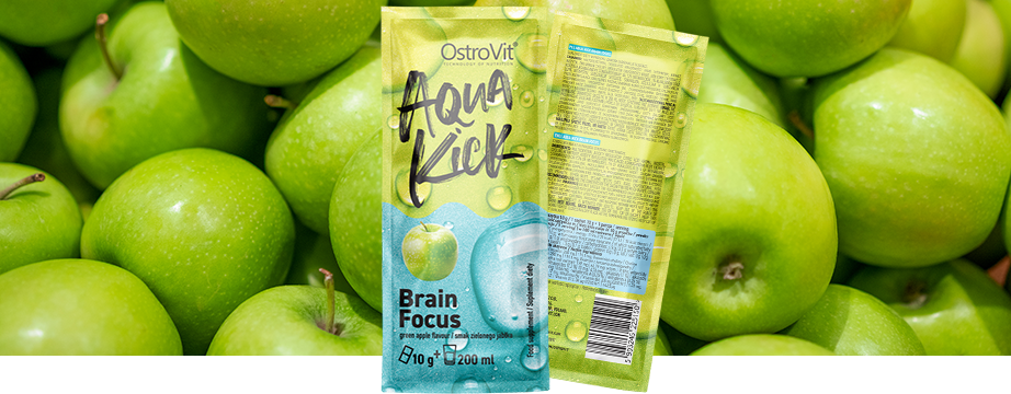 OstroVit Aqua Kick Brain Focus - це комплексна дієтична добавка, яка містить інозитол, холіну біцинат, екстракт кореня ашвагандхи, а також вітаміни B6 і B12. Це препарат зі смачним смаком зеленого яблука, доступний у вигляді пакетика з водорозчинним порошком. Це продукт, розроблений для людей, які піклуються про правильну роботу мозку та когнітивні здібності.