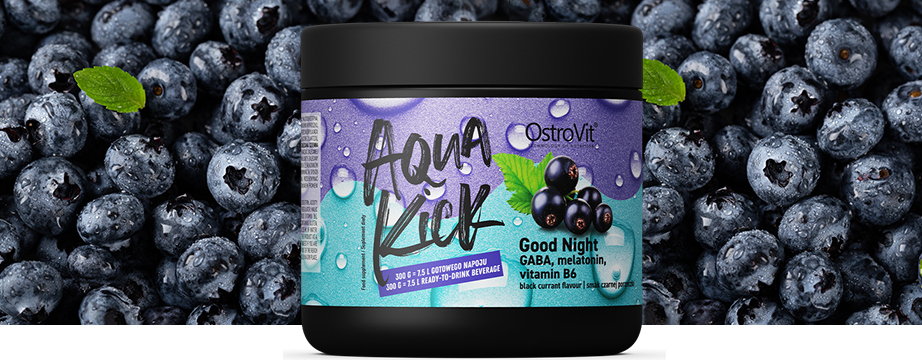 OstroVit Aqua Kick Good Night - це дієтична добавка, яка містить набір з трьох інгредієнтів, таких як гамма-аміномасляна кислота, вітамін B6 і мелатонін. Це препарат зі смачним смаком чорної смородини, доступний у формі порошку, який чудово розчиняється у воді. Це продукт, створений для людей, які піклуються про правильну регенерацію та якісний сон.