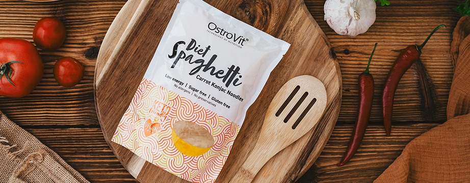 OstroVit Diet Spaghetti Carrot Konjac Noodles - це низькокалорійний еквівалент класичної локшини спагетті. Продукт виготовляється з борошна коньяку та морквяного порошку. Паста повністю безглютенова і не містить доданого цукру в інгредієнтах. Характеризується низьким глікемічним індексом і низьким вмістом жиру. Шукаєте смачну альтернативу класичним пшеничним макаронам? Обов'язково протестуйте локшину OstroVit Diet Spaghetti Carrot Konjac Spaghetti!