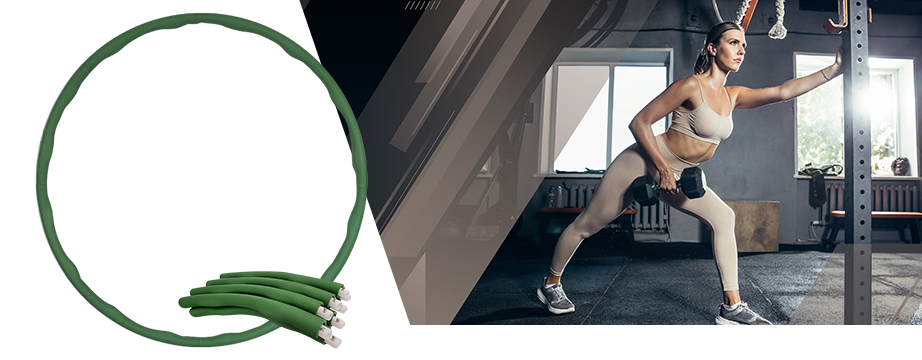 Виріб має масажні вкладки, які чинять тиск на обрану частину тіла під час тренування. Вага колеса становить приблизно 1 кг, тому воно також ефективно впливає на хід вправи та відповідний тиск на тіло. Крім того, обід покритий спеціальною піною, яка приємна до тіла, забезпечує зчеплення зі шкірою та покращує зчеплення з поверхнею. Зручне зберігання колеса забезпечується тим, що його можна скласти на менші 8 частин - так, щоб воно не займало багато місця, а також полегшує транспортування колеса до потрібного місця тренування. Обруч хула-хуп підходить для занять фітнесом, аеробікою і тренажерним залом, а також для занять вдома.