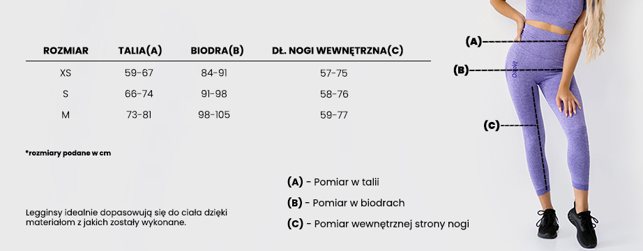 Легінси доступні в 3 розмірах XS, S, M та 3 модних кольорах: фіолетовому, темно-зеленому та рожевому. Виріб виготовлений з високоякісної дихаючої тканини, яка еластична і тонка, ідеально прилягає до тіла, підкреслюючи жіночі вигини, не будучи при цьому прозорою! Легінси мають завищену талію - щільний пояс утримує живіт і оптично звужує лінію талії. Приталений крій формує силует, підкреслюючи фігуру та сідниці.