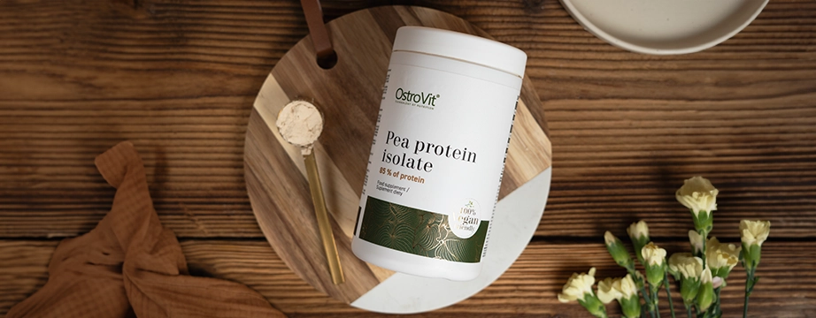 Ізолят горохового білка, що використовується в OstroVit, - це сполука, яка відрізняється багатим амінокислотним профілем, що позитивно впливає на якість дієтичної добавки і робить продукт повноцінним продуктом, який також може використовуватися людьми, що дотримуються рослинної дієти.