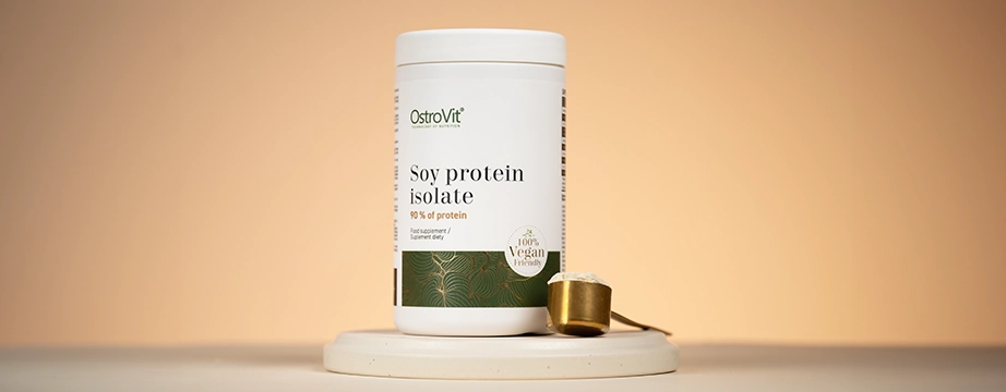 Ізолят соєвого білка, що використовується в OstroVit, - це сполука, яка відрізняється дуже хорошою розчинністю і багатством цінних амінокислот, що позитивно впливає на якість дієтичної добавки і робить продукт повноцінним продуктом, який також може використовуватися людьми, що дотримуються рослинної дієти.